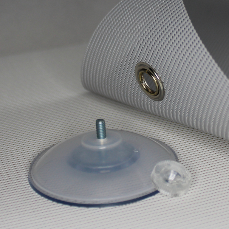 Ombralis utilise des ventouses industrielles haute performance, positionnées stratégiquement sur la toile pour répartir les forces de traction.